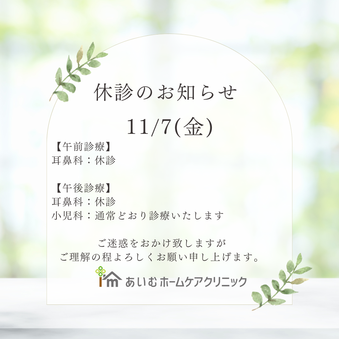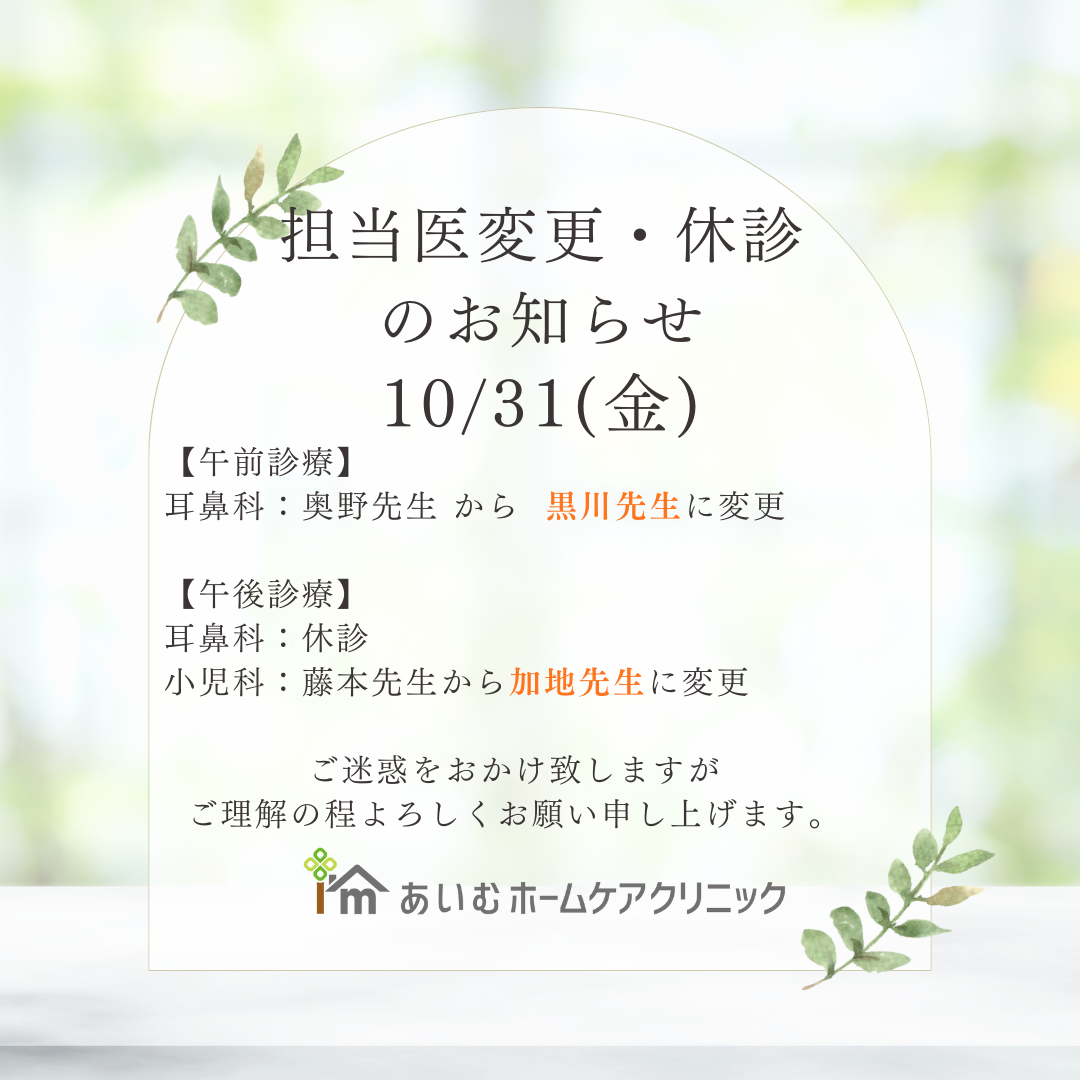 10/31(金)の診療について、担当医の変更と休診がございます。宜しくお願いいたします。